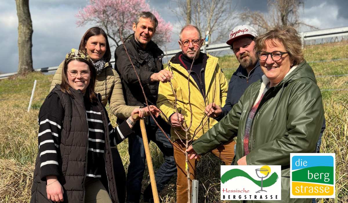 Auch in diesem Jahr haben wir unsere traditionelle Pflanzaktion für Mandel und Pfirsichbäume durchgeführt – diesmal in Kooperation mit dem Tourismus Service Bergstraße, der in diesem Jahr 100 Bäume den Winzern der Hessischen Bergstraße und weitere 100 Bäume auf der badischen Seite finanziert hat.
