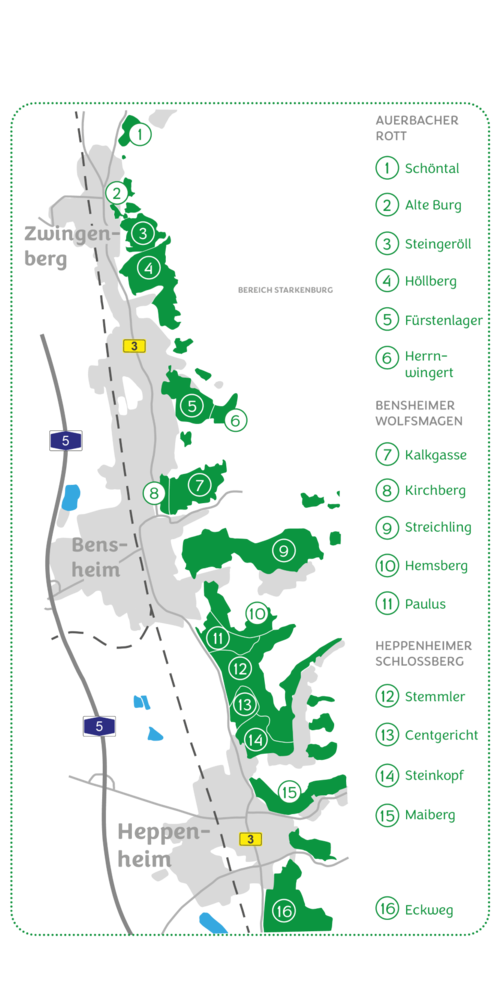 Bergsträßer Weine sind von einer frischen, herzhaften Art. In den letzten Jahren hat sich der Ausbau bei den Weißweinen zu ausgesprochen feinen, fruchtigen Weinen hin entwickelt, die vor allem bei jüngeren Weingenießern sehr beliebt sind.